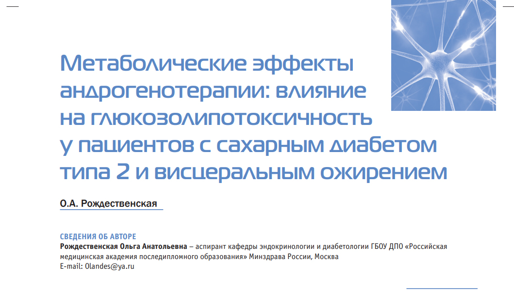 Метаболические эффекты андрогенотерапии: влияние на глюкозолипотоксичность у пациентов с сахарным диабетом типа 2 и висцеральным ожирениемДата: 29.06.2015 Источник: ЭНДОКРИНОЛОГИЯ: новости, мнения, обучение №2 2015 Участники: Ольга Рождественская вернуться к медиатеке скачать интервью в txt формате скачать интервью в pdf формате ![]() ![]() Использование заместительной гормональной терапии тестостероном у пациентов с сахарным диабетом типа 2, висцеральным ожирением и андрогенодефицитом способствует улучшению метаболических характеристик углеводного и липидного обмена и устранению состояния глюкозолипотоксичности. |